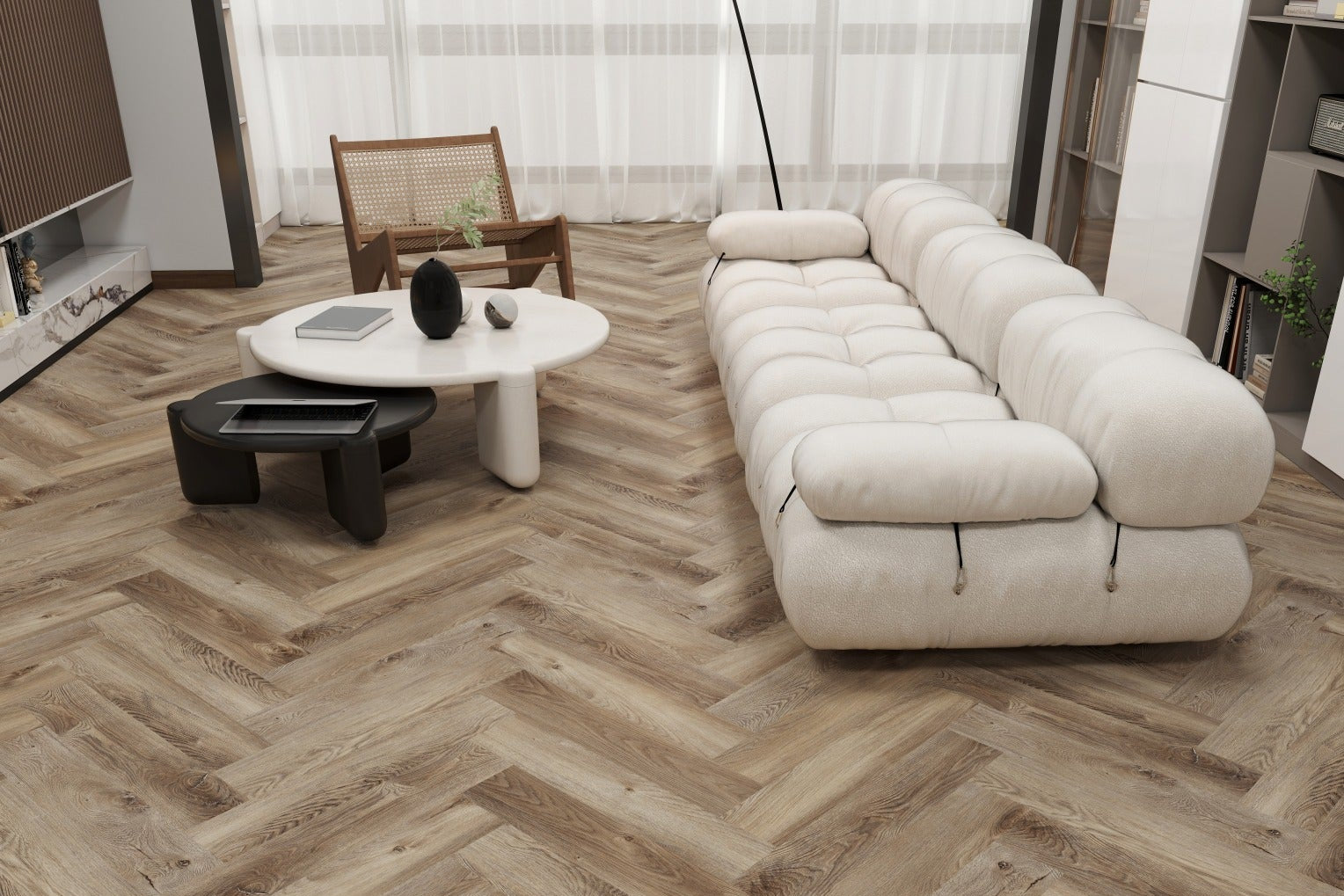If you’re looking for the warm, natural look of wood with the convenience of a modern, low-maintenance floor, the Citadel Herringbone Greige SPC Click LVT is the perfect choice. Its soft greige tones and classic herringbone pattern bring a touch of elegance to any room, while the micro-bevelled edges create a refined, high-end finish.